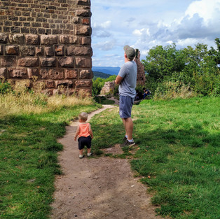 Esimene peatus - Eguisheimi kolm lossi. Sinna viis pisike metsarada. Jalutasin alguses ise, aga lõpuks küsisin ikka issi sülle. Koht oli ilus loomulikult, mäe otsast avanes armas vaade pisikestele küladele.